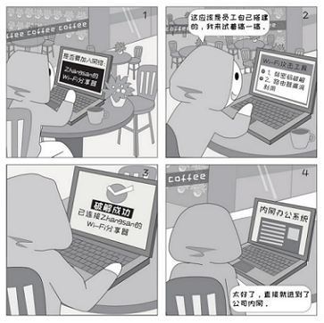 Wi-Fi信號(hào)具有一定的覆蓋范圍,不僅在工作區(qū)域內(nèi)可以連接,甚至在辦公樓附近也可以接入。員工私自搭建的Wi-Fi加密方式通常較弱,一旦被破解,會(huì)導(dǎo)致攻擊者直接訪問辦公網(wǎng)絡(luò)的風(fēng)險(xiǎn)。